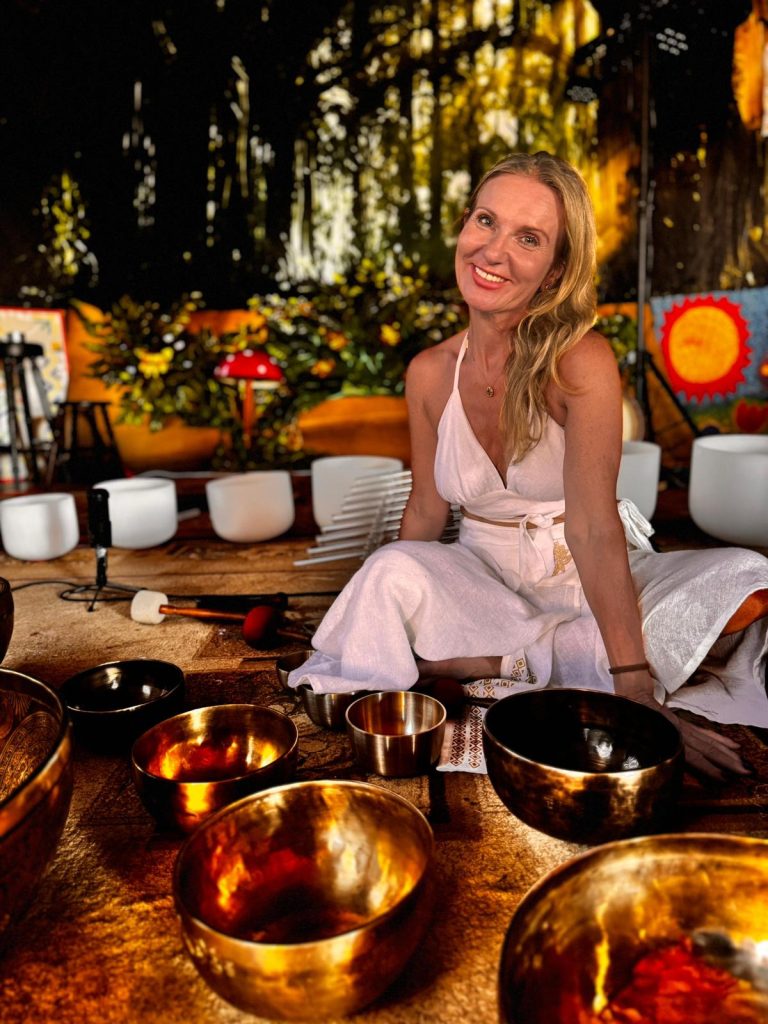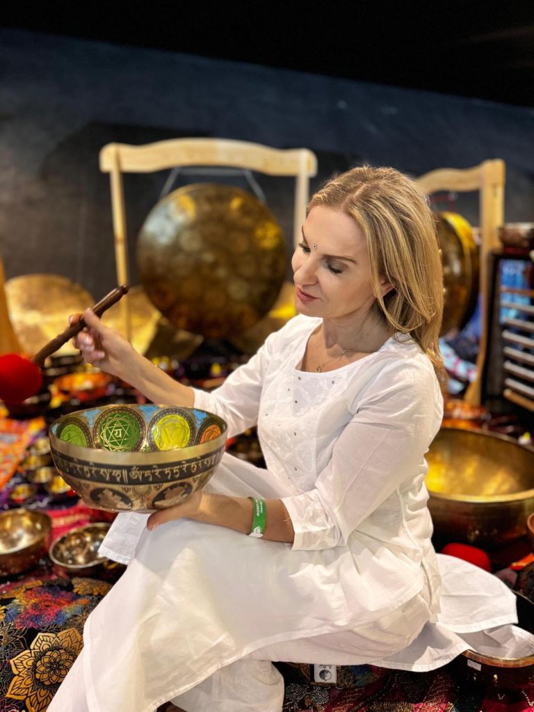 Katarzyna Mikutowicz – certyfikowana terapeutka dźwiękiem, kształcona w Indiach, Nepalu i Polsce pod okiem mistrzów himalajskiej tradycji uzdrawiania dźwiękiem.